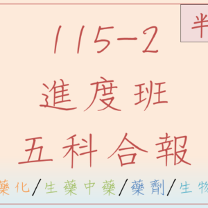115-2 藥理藥化/生藥/藥劑/生物藥劑進度班(半年期)